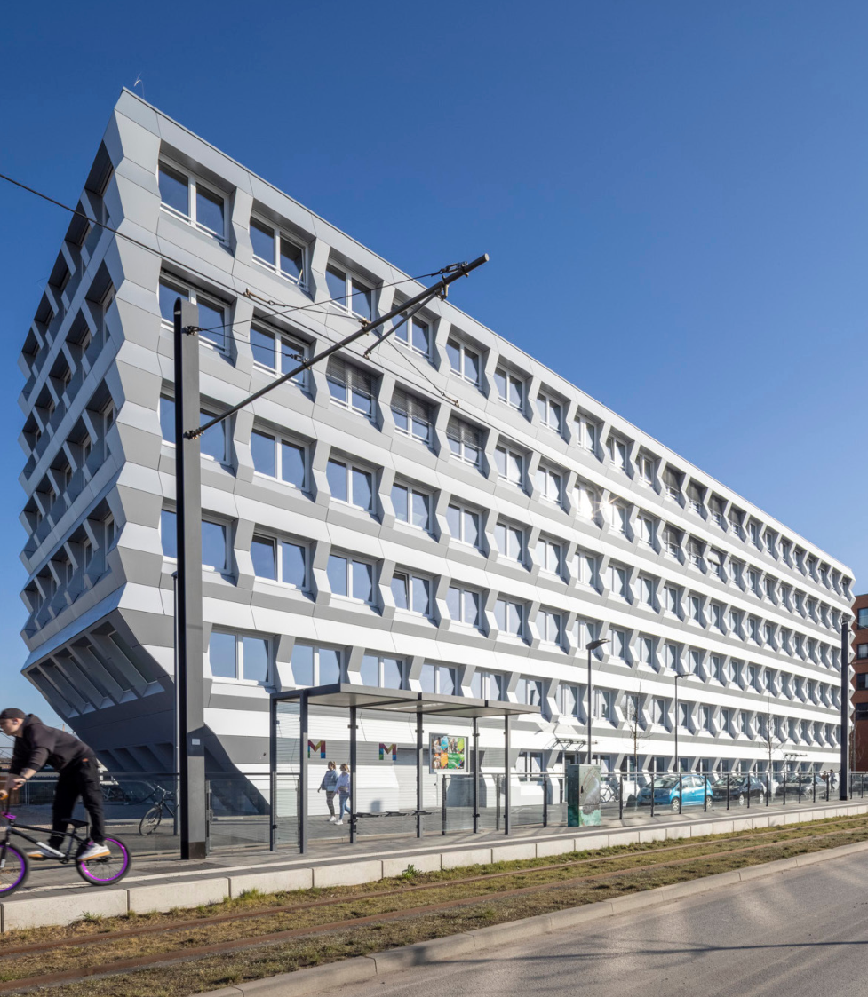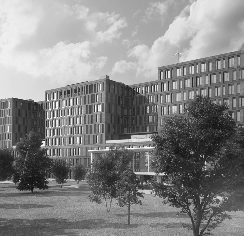 Büros genutzt werden können. Die moderne und nachhaltige Architektur des